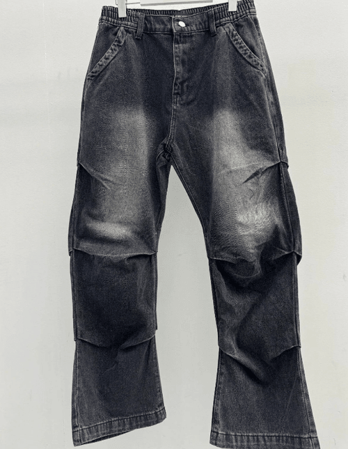 HT86127 - Y2K風黑灰色褶皺牛仔褲(女款)